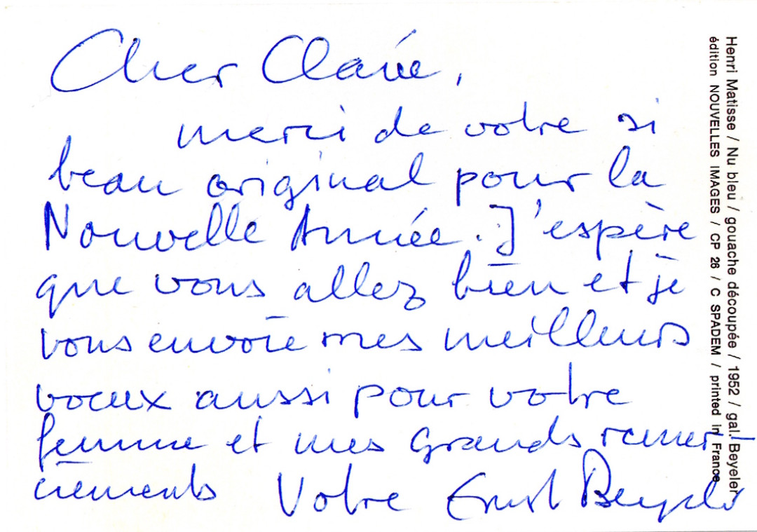 Depuis le début des années 1970 Clavé a pris l’habitude d’envoyer des vœux personnalisés à ses amis proches, des petits collages originaux et autres attentions artistiques destinées au cercle des intimes.