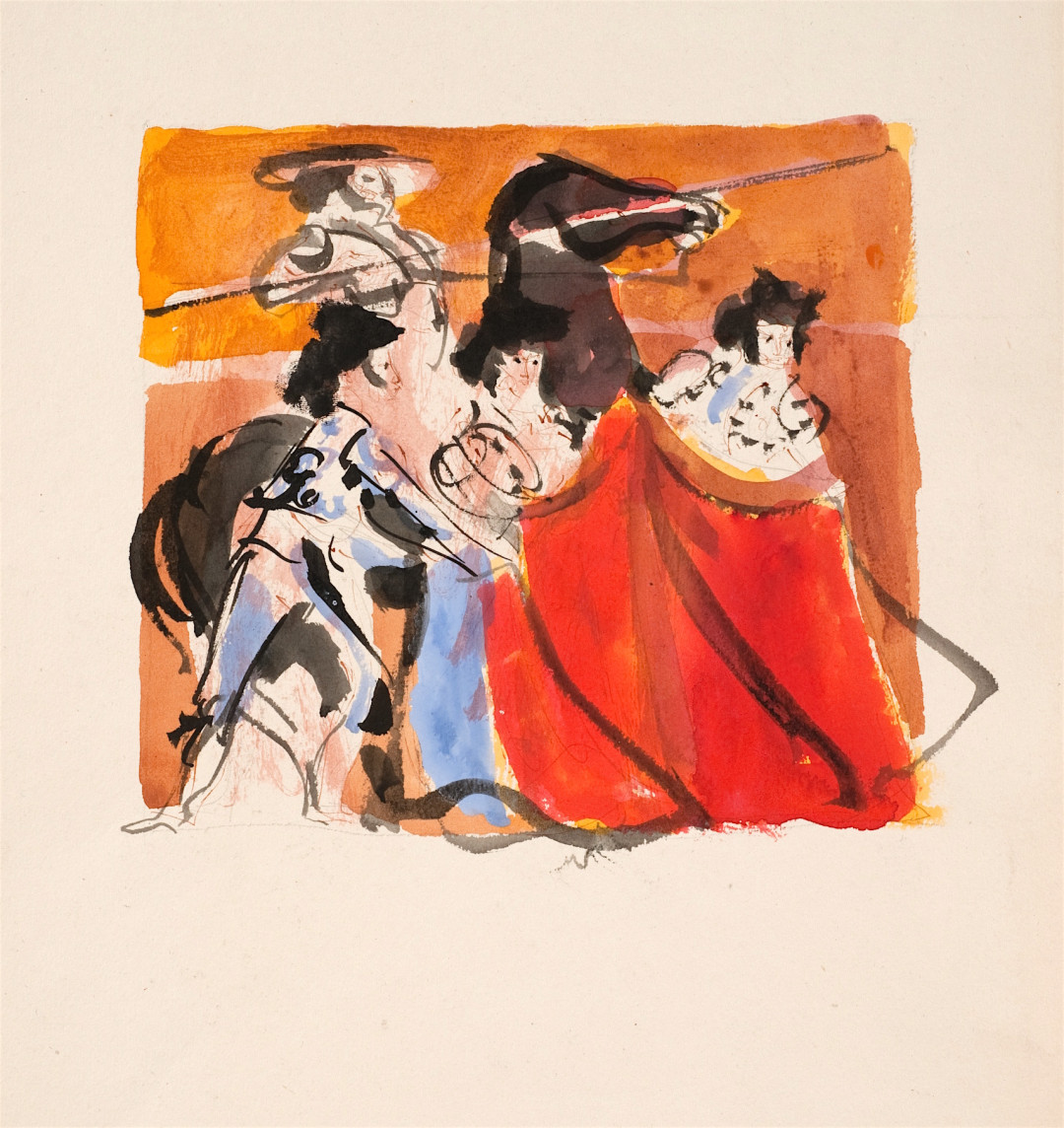 Le mois dernier paraissait un ouvrage consacré à la tauromachie par Ozvan Bottois. Variant les lectures, iconographique, historique et poétique, ce livre analyse l'acharnement des artistes à fondre la tauromachie dans leur pratique. Barcelo, Botero, Dalí, Doré, Goya, Manet, Masson, Picasso, Solana, Viallat, Zuloaga, tous ont exploré leur fascination pour la corrida et les valeurs qu'elle partage avec l'art. Clavé a bien sûr illustré le thème à de multiples reprises. L’auteur n’a pas retenu ses représentations classiques qui ont contribué à la reconnaissance de Clavé à son arrivée en France. Il a choisi une œuvre du milieu des années 1980 pour illustrer le mythe du Minotaure. Une œuvre hommage à Picasso, Bottois y voit un traitement du sujet « inextricablement lié à la violence, à la mort, à la sexualité » ouvrant la voie vers des représentations plus abstraites et énigmatiques de la fin du XXe siècle et du début du XXIe. IMAGE\_WP|1264|"Le torero" 1945 Lithographie en noir|"Le torero" 1945 Lithographie en noir