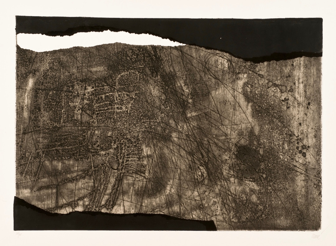This exhibition organised by the BnF, which presents around fifty prints from 1955 to 1995, is a good overview of Clavé’s printed work. These lithographs, etchings, aquatints, carborundum, embossings, collages and lithographed brown papers enable us to apprehend forty years of a creative journey, which is both technically and stylistically rich.