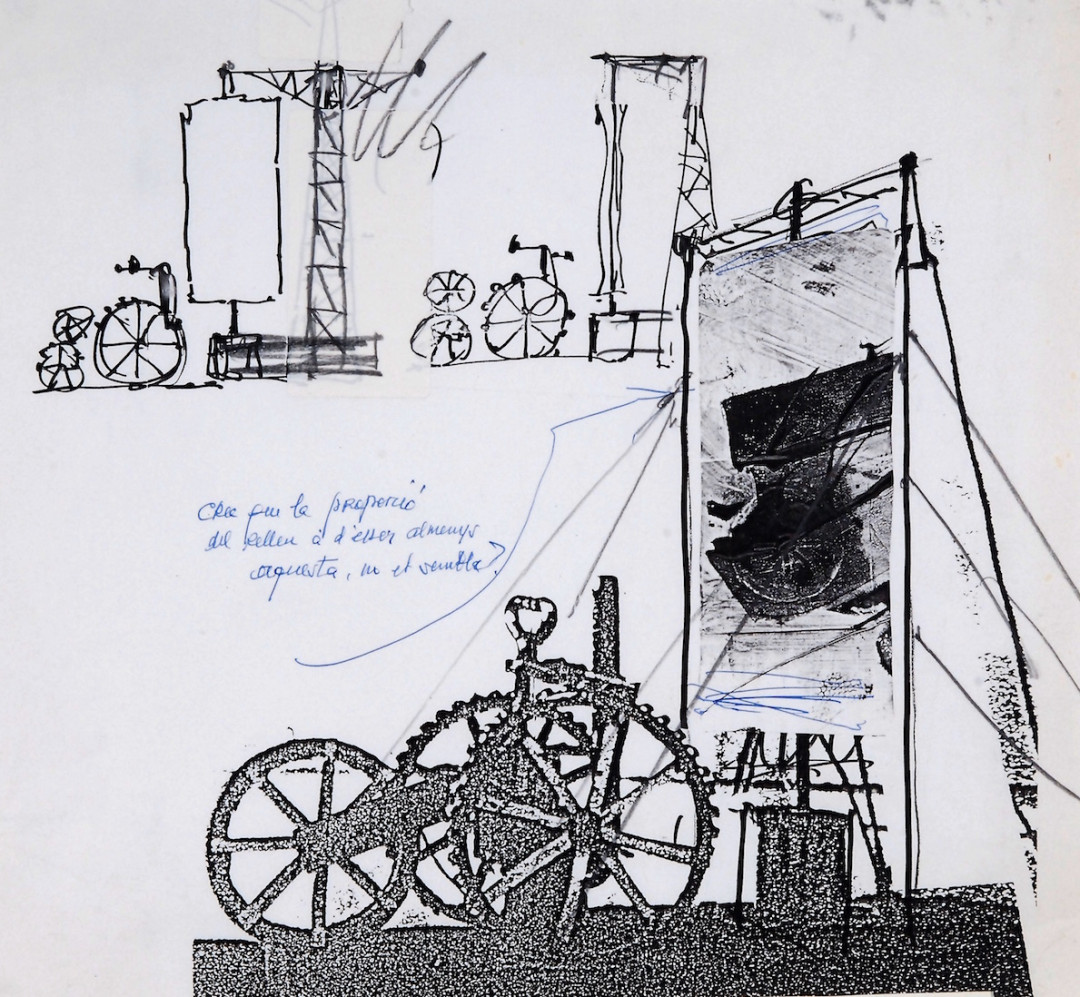 From the mid-eighties Clavé is known worldwide. The city council of Barcelona (Ajuntament) suggests he picks an area in the city so that he creates an artwork for his native town. Clavé chooses the Parc de la Ciutadella, a place full of memories for him (Sunday walks with his mother to visit the zoo or go to the Children’s carousel). Not long after, the city council decides to pay tribute to the Universal Exhibition of 1988 and to the Catalan industry more generally. This decision is Clavé’s breaking point. He starts to build models for a monumental sculpture, with the idea that it must include wheels. Wheels remind him of his childhood carousel and of a sculpture at the entrance of the park, which represents the Catalan industry, and features a wheel and a woman.