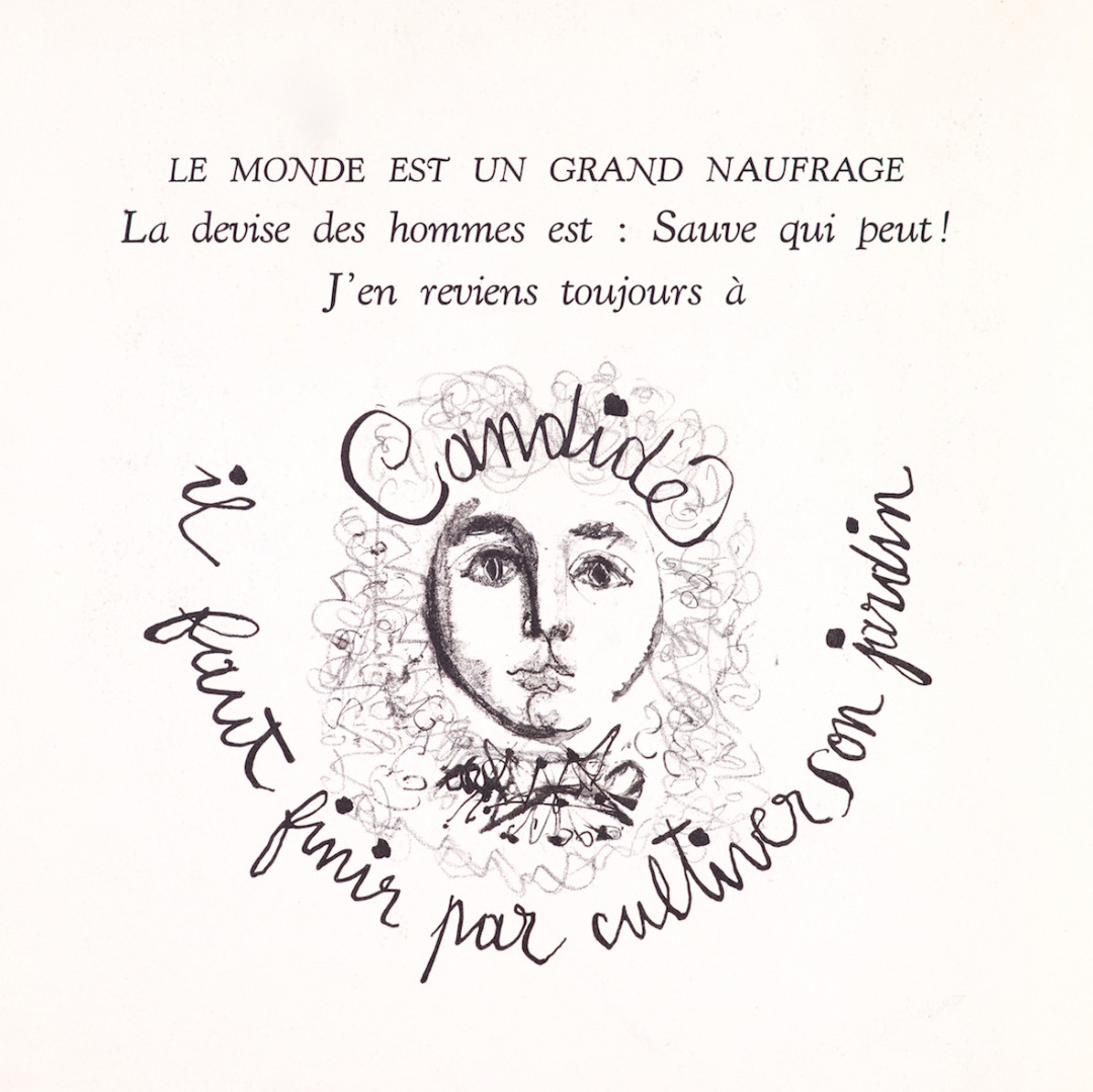 In December 1948 the editions Jean Porson publish Candide, with 46 lithographs in black illustrating the book. 10 ‘suites’ on top of the illustrations from the book, and 10 ‘suites’ on top of the unused plates are also printed. On December 24, the Gazette des beaux-arts reports “illustrating the text of Candide, which is one of the most admirable work by Voltaire, Clavé embroidered images in his lithographs in black and white, which are admirable of taste and psychological penetration. His style seems grainy and translucent, just like rare porcelain. “ A few days later the Combat also evokes “Clavé’s lithographs for Candide, which are truculent and full of verve”.