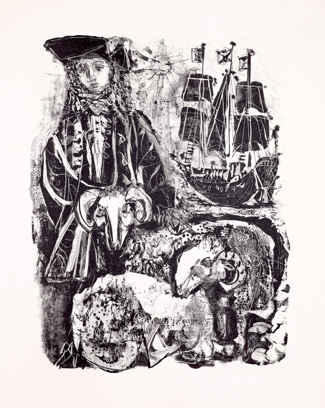 Si l’universalité du conte s’est construite sur les thèmes intemporels comme le mal, la guerre, la religion ou la place des femmes, Clavé se joint à Voltaire pour s’écarter de tout moralisme et atteindre ses lecteurs par un rire amer. Ses lithographies en noir illustrent magistralement ce voyage initiatique et invitent à l’introspection.