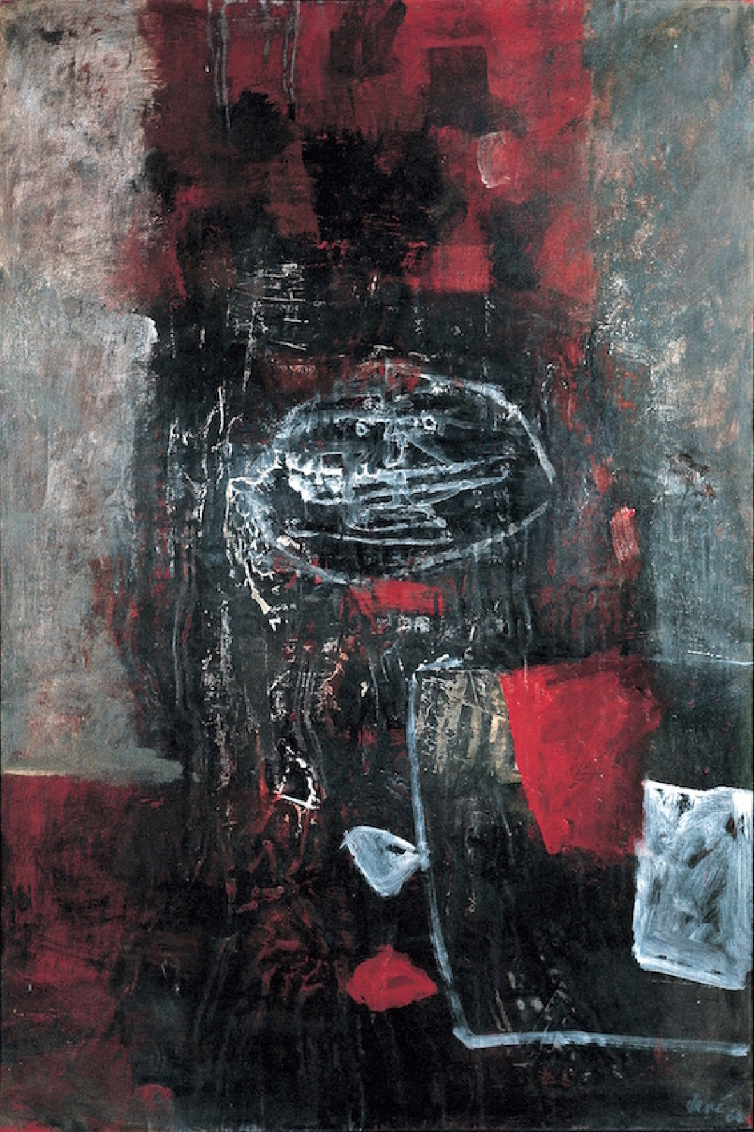 Guerrier au bouclier date de 1960. L'oeuvre propose aux spectateurs une représentation fixe, frontale, très caractéristique. Ici le bouclier, ailleurs la lance ou l'épée soulignent l'immobilité du personnage. Le temps est suspendu, grave. La puissance des rouges impose force et respect et pourtant, cette représentation pourrait être aussi bien celle d'un guerrier redoutable, mercenaire sanguinaire de quelques tyrans que d'une marionnette dérisoire. Le portrait en pied du personnage brouille les pistes et le regard du spectateur ne peut parfaitement distinguer la silhouette du soldat. Car en ce début des années 60, Antoni Clavé nous invite à "pénétrer dans le domaine où la peinture s'affranchit" (P. Seghers).