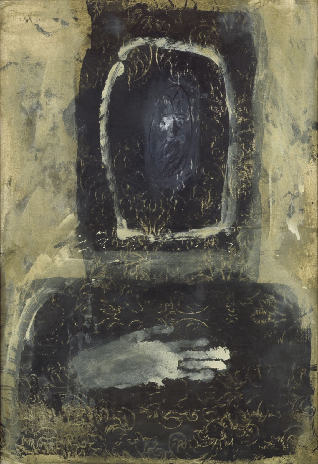 Ces tableaux, parmi lesquels La main, frappent par les contrastes d’ombre et de lumière mais aussi par le classicisme architectural de leur composition, leur caractère solennel. Cependant ces tableaux en hommage au Greco ont tous retenu l’ironique anonymat du commanditaire du portrait : les visages peints par Clavé échappent au spectateur, prolongeant le mystère et renvoyant le regard sur cette main. La main peinte par le Greco est une merveille de carnation. Elle annonce Goya, Manet, obsède par sa perfection colorée, son audace. Clavé l’interprète, la transforme en trace, parfois ajoute l’autre main (L'Homme sans visage, Deux mains ou encore A Domenikos T) dont l’empreinte se retrouvera sur plusieurs œuvres postérieures. Et si la fraise demeure le centre de la composition, Clavé s’autorise des clins d’œil humoristiques aux codes de représentations sociales du XVIIe siècle lorsqu’elle devient démesurément grande ou démultipliée en une sorte de mise en abime du cadre encadré.