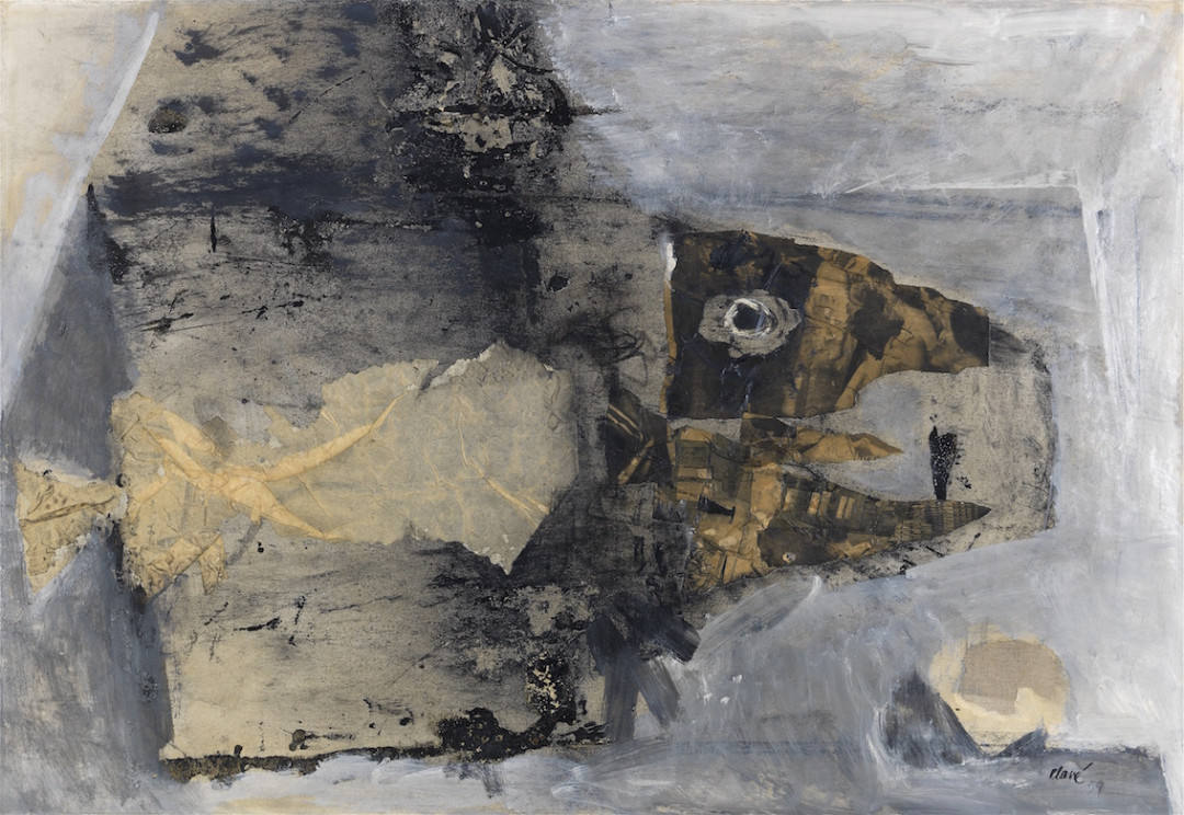 L'exposition monographique de la galerie Creuzevault en 1958 consacre Antoni Clavé. Le succès de l'artiste repose en partie sur ses séries de rois et de guerriers. Pourtant dès 1958 Clavé se lance dans une autre série de natures mortes consacrées exclusivement aux poissons. L'artiste s'était inscrit depuis longtemps dans la tradition espagnole des natures mortes composées de fruits, de fleurs et autres éléments aux symboliques complémentaires. Les poissons de Clavé sont donc l'épuration du sujet pour n'en garder que l'élément essentiel. Et pourtant, l'essentiel n'est pas le poisson. L'essentiel dépasse la figuration et réside dans l'assemblage des différents éléments constitutifs de l'animal. L'essentiel est bien l'enchevêtrement, l'imbrication des matières sur la toile pour former un poisson dans la rétine du spectateur. Ultime pirouette, le cercle clair situé dans la partie inférieure de la composition est un morceau de toile vierge, vide, un pied de nez autant aux règles académiques de composition qu'à ses goûts personnels pour l'accumulation de matériaux.
